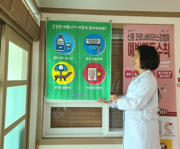 또한, 코로나19 감염예방을 위해 직접방문이 어려워짐에 따라 지난 5월말 폭염대비 건강수칙 홍보 가제손수건 2,500개를 제작하여 배부하고, 현수막을 설치하는 등 폭염대비 어르신건강관리 홍보에 만전을 기하고 있다.