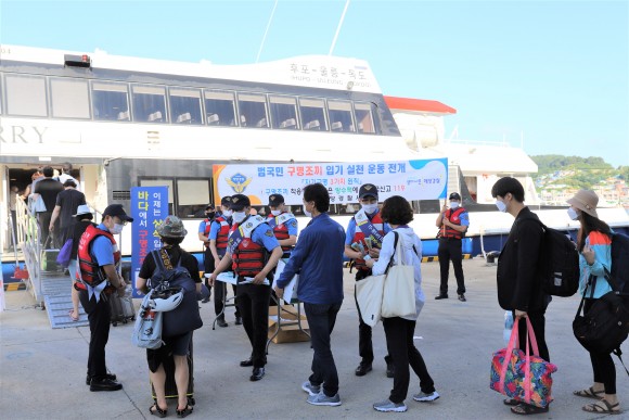 ※ 연안안전의 날 : 2013년 충남 태안 사설 해병대캠프 사고를 계기로 제정된 ‘연안사고 예방에 관한 법률’에 따라 7월 18일을 연안안전의 날로 지정 울진해경은 이날 여객선터미널을 찾은 관광객 400여명을 대상으로 자기구명 3가지 원칙(▲구명조끼 착용 ▲휴대폰은 방수팩에 ▲긴급신고 119)을 담은 물티슈, 부채 등 홍보물품을 배부하였다.