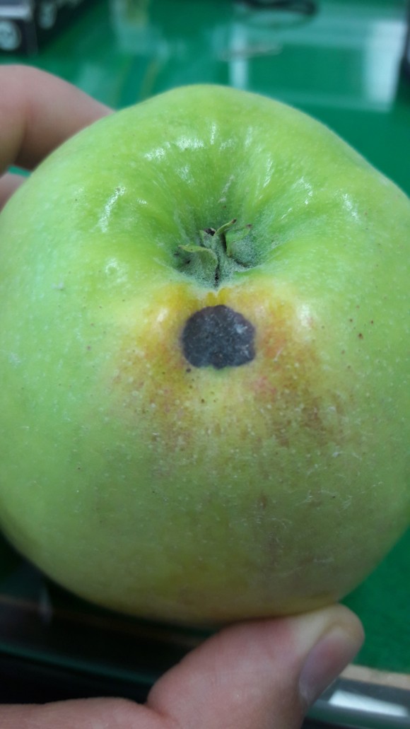 탄저병은 처음에는 과실표면에 파리똥 같은 검은 점으로 발생하고, 점차 병이 진행되면서 연한갈색 둥근 무늬가 생기고 과실표면이 움푹 들어가게 된다.