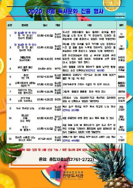 진양도서관, 8월 독서문화진흥행사 운영