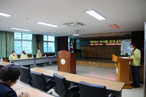 ‘2020년 반부패 청렴교육’은 경상남도교육청 감사관실 김민정 청렴교육강사님을 초청하여 진행되었다. 교육내용은 공무원이면 숙지해야 할 청탁금지법, 공무원 행동강령, 청렴 소양 등으로 구성되었다.