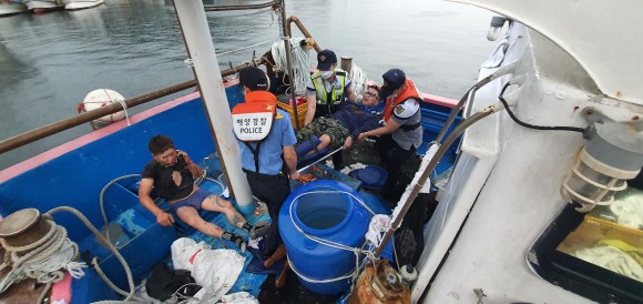 울진해경, 영덕 축산항내 계류어선 취사중 누설가스 폭발...부상자 구조