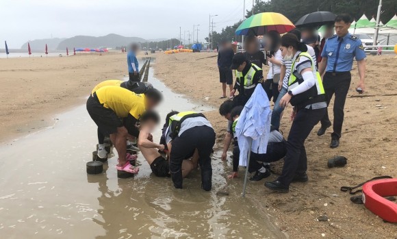 태안해양경찰서(서장 윤태연)에 따르면, 당시 모래해변을 산책 중이던 전씨는 물이 고인 웅덩이를 예사로 보고 건너다 디딘 왼발이 웅덩이 땅속으로 박히면서 꼼짝달싹도 못하고 낭패를 본 것으로 알려졌다.