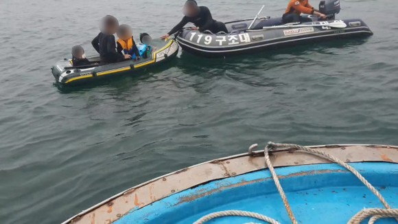 태안해경, 보트튜브 타고 표류하던 아빠와 아이 3명 구조