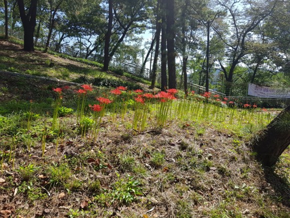 5년 여전부터 식재하기 시작한 꽃무릇은 9월 초 개화를 시작하였으며 9월 하순경부터 붉은꽃이 절정을 이루어 자발적인 마스크 착용 등 코로나 예방 수칙을 준수한 수준 높은 김천 시민들의 방문을 기다리고 있다.