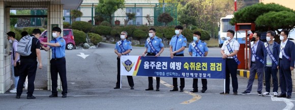 |  | | | ↑↑ 태안해양경찰서 윤태연 서장(캠페인 현수막 왼쪽에서 두 번째)과 각 과장단이 청렴어깨띠를 띠고 음주운전 근절 캠페인에 함께 참석한 가운데 출근자 음주측정과 코로나19 발열확인이 이뤄지고 있다. (출처=태안해양경찰서) | | ⓒ (주)영남도민일보 | | [영남도민일보] 영남도민일보 기자 = 충남 태안해양경찰서장(서장 윤태연)는 지난 28일 아침 청사 입구에서 음주운전 근절 캠페인을 펼치며, 청렴을 선도하는 공직문화 조성을 이어가고 있어 눈길을 끌고 있다.