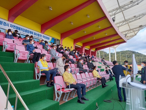 |  | | | ⓒ (주)영남도민일보 | | [영남도민일보] 김재근 기자 = 문경시는 지난 7일 문경시민운동장에서 관계 전문가와 지역주민 등 80여명이 참석한 가운데 문경시 자연재해저감 종합계획 재수립을 위한 주민 공청회를 개최했다.