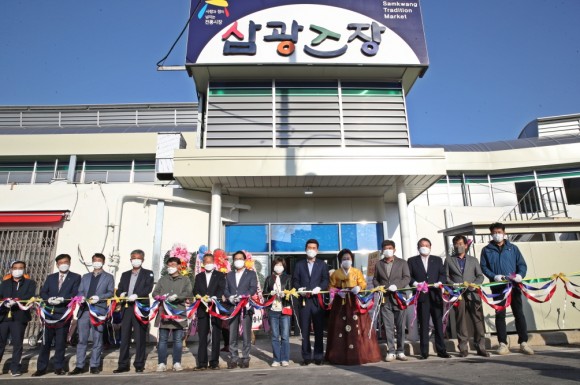 |  | | | ⓒ (주)영남도민일보 | | [영남도민일보] 홍인환 기자 = 포항시는 26일 오천삼광시장 특설무대에서 이강덕 포항시장을 비롯해 지역의 시·도의원 및 유관기관, 자생단체장, 상인 등 50여 명이 참석한 가운데 ‘오천삼광시장 아케이드 준공식’을 개최했다. 이날 준공식은 코로나19 확산 방지를 위해 발열 확인, 마스크 착용, 손소독 등 방역수칙을 철저히 준수한 가운데 사업 경과보고, 인사말과 내빈 축사, 테이프 컷팅 순으로 진행되었으며, 이후 식후행사로 경품추첨 등을 주민들과 상인들이 함께하는 소통의 장이 마련되었다.