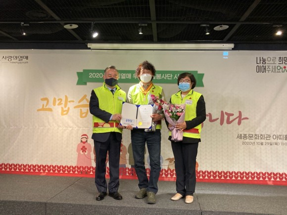 김세준 나눔봉사단장이 사회복지 공동모금회 사랑의 열매 봉사분야 중