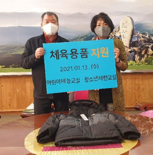이 날 전달식에는 산청교육지원청 장태분 교육장, 산청군 체육회 이승화 회장, 백인호 사무국장이 참석하여 학생들의 동절기동안 체력 관리를 위한 응원과 함께 겨울방한복(패딩)을 초등학생 39명에게 전달했다.