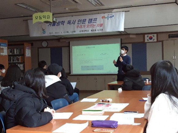 최태환 교장은 “학교도서관이 독서교육의 중심이고 방학이며 코로나로 엄중한 시기에도 불구하고 지난 여름에 이어 이번 겨울캠프를 조심스럽게 열게 된 것은 학생들의 독서와 토론교육의 필요성을 인식해서이다”는 말씀을 하셨다.