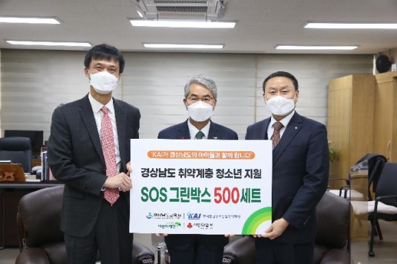 ‘SOS 그린박스’는 한국항공우주산업(주)이 후원하고 초록우산 어린이재단에서 선정한 진주, 사천, 고성, 산청교육지원청의 취약계층 중·고등학교 여학생 500명에게 1인당 4만원 상당의 위생물품을 지원하는 사업이다.