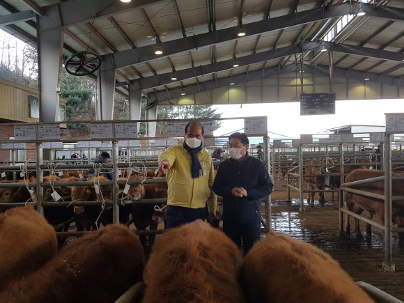이날 강영석 시장은 경매 진행 상황을 지켜보고 코로나19로 힘든 상황 속에서도 가축시장을 운영하는 축협 관계자와 경매에 참석한 축산 농가를 격려했다.