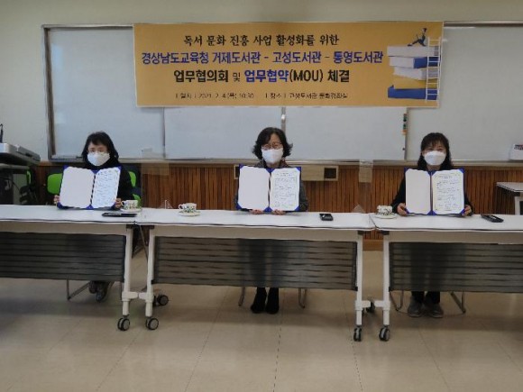 |  | | | ⓒ (주)영남도민일보 | | [영남도민일보] 영남도민일보 기자 = 경상남도교육청 고성도서관(관장 허윤금)은 경상남도교육청 거제도서관, 경상남도교육청 통영도서관과 독서문화진흥 사업 활성화를 위한 업무협약을 4일(목) 고성도서관에서 체결했다.