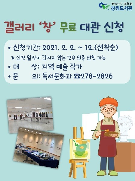 창원도서관, 갤러리‘창’ 전시 작가 모집