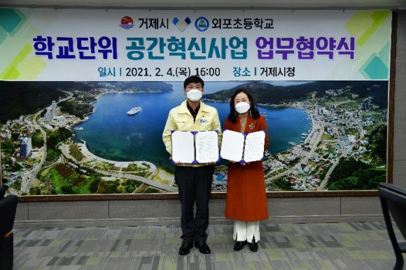 |  | | | ⓒ (주)영남도민일보 | | [영남도민일보] 영남도민일보 기자 = 외포초등학교(교장 이미경)는 4일 거제시(시장 변광용)와 거제시청에서 학교단위 공간혁신사업 협력을 위한 업무협약(MOU)을 체결했다.