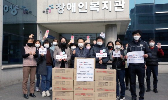 |  | | | ↑↑ 태안해양경찰서 김병승(51세) 해상교통계장이 동료 경찰관(경사 강정현)과 함께 2월10일 지역사회 장애인복지관을 찾아 관계자들의 노고를 위로하고 따뜻한 설명절을 기원했다. / 사진 출처=충남태안군 장애인복지관. | | ⓒ (주)영남도민일보 | | [영남도민일보] 영남도민일보 기자 = 태안해양경찰서 김병승(51세) 해상교통계장이 2월 10일 설연휴 직전, 지역 장애인 복지시설을 찾아 사랑나눔 작은 실천으로 주변에 훈훈함을 전하고 있다.