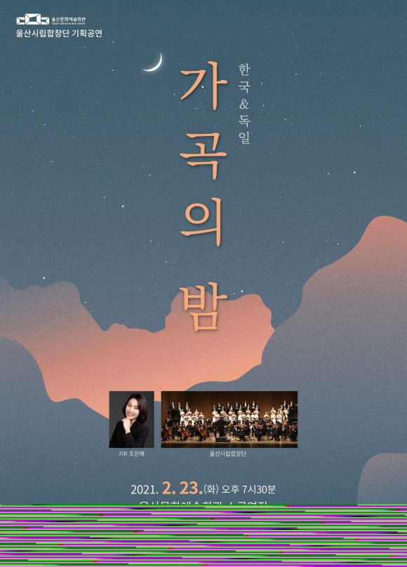 울산시립예술단 관계자는 “끝나가는 겨울밤의 매력을 더해줄 ‘가곡의 밤’ 공연에 시민여러분의 많은 관심을 부탁드린다.”라고 전했다.