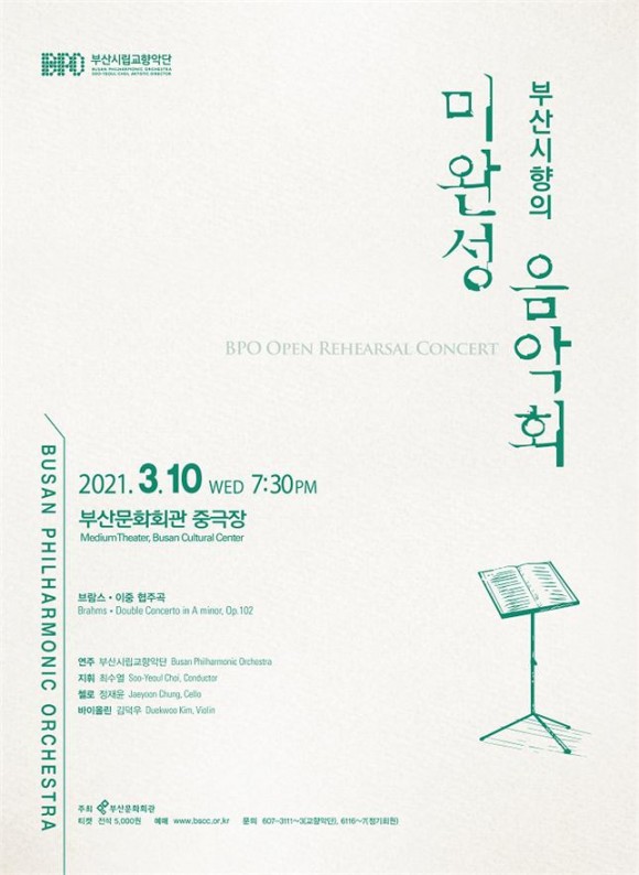 |  | | | ⓒ (주)영남도민일보 | | [영남도민일보] 영남도민일보 기자 = 부산시립교향악단이 오는 3월 10일 ‘제572회 정기연주회’ 오픈 리허설을 선보인다.