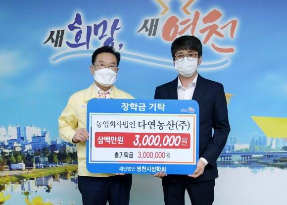 지난 26일 충남 서산에 위치한 마늘 가공·유통 전문업체인 농업회사법인다연농산(주)(대표 안진우)에서 영천시 지역인재 육성과 교육발전을 위해 300만원의 장학기금을 영천시장학회에 기탁했다.