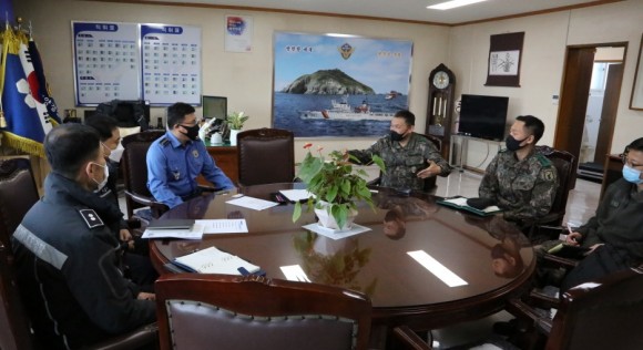 |  | | | ↑↑ 윤태연 태안해경서장(가운데 왼쪽)과 32사단 이병석 충절부대장(가운데 오른쪽)이 양측 참모진과 함께 해양안보 강화 등 군·경 통합방위 협력 논의를 하고 있다. / 출처=태안해양경찰서 | | ⓒ (주)영남도민일보 | | [영남도민일보] 영남도민일보 기자 = 충남 태안해양경찰서(서장 윤태연)는 3월 5일 서장실에서 관내 32사단 이병석 충절부대장 일행을 접견하고 통합방위 협력강화를 위한 포괄적 논의를 진행했다고 밝혔다.