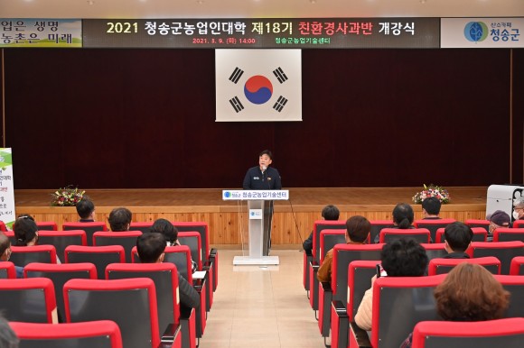|  | | | ⓒ (주)영남도민일보 | | [영남도민일보] 김 동수 기자 = 청송군(군수 윤경희)은 농업전문인력 양성을 위해 지난 9일 농업기술센터에서 ‘2021년도 청송군농업인대학 개강식’을 가지며 본격적인 운영에 들어갔다.