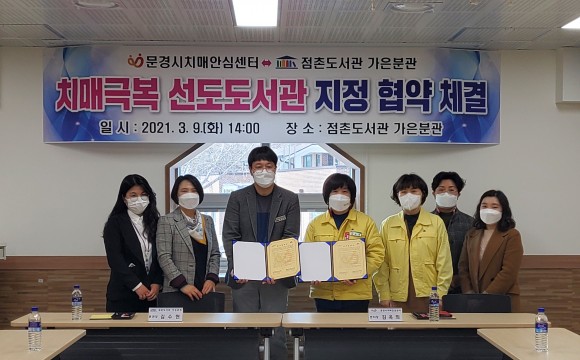 치매극복 선도도서관 지정에 따라 점촌도서관 가은분관 내에 치매 정보도서 코너를 마련하여 치매극복 관련 도서 및 홍보물과 간행물을 비치ㆍ운영하며 도서관 전 직원은 치매 파트너 교육을 이수하여 치매 친화적 환경조성에 동참하기로 하였다.