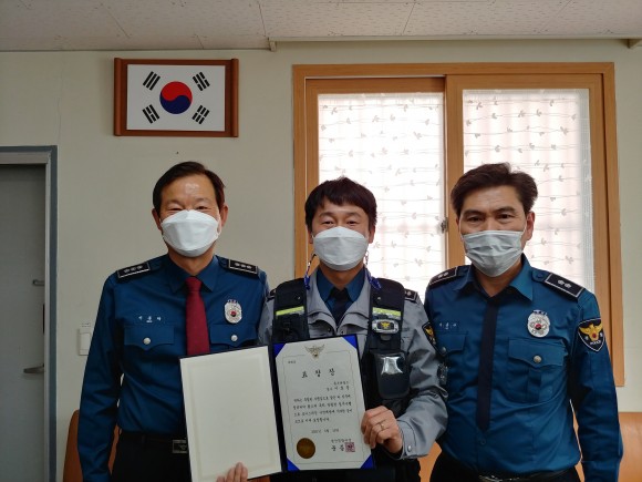 이날 수여식은 3월초경 악성앱을 통해 금융기관을 사칭한 저금리 대환대출 보이스피싱 범죄 신고를 접수하고, 신속히 현장출동하여 피해자 대상 적극적인 설득과 조치로 피해를 예방한 유공에 대한 격려로 진행되었다.