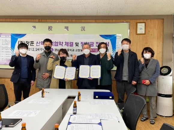 2020년 ㈜정훈은 경남산업고등학교 학생을 19명 채용하였으며 2차례에 걸쳐 총 1,900만원에 달하는 학교발전기금을 흔쾌히 기부하였다. 이에 대한 감사의 표현을 하는 자리도 마련되었다.