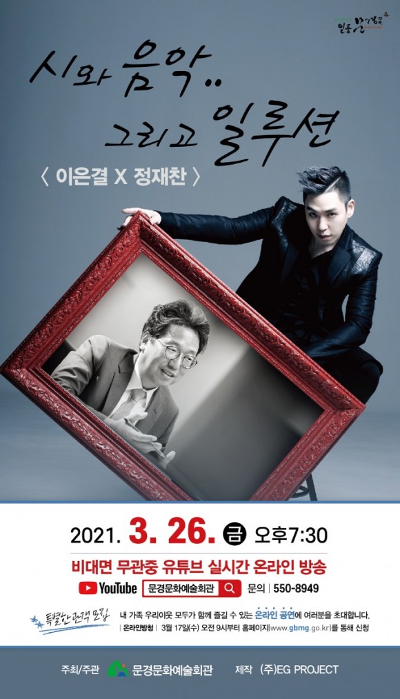 본 공연은 3월 26일(금) 오후 7시 30분 유튜브 검색창 [문경문화예술회관] 채널로 검색하면 누구나, 어디서나 안전하게 공연을 즐길 수 있다.