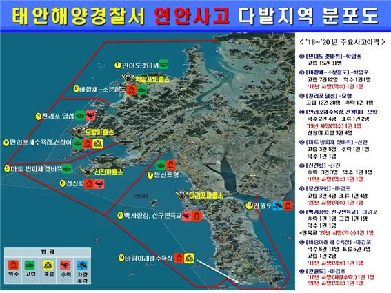 태안해경, 연안사고 다발지역 분포지도 최신판 배포