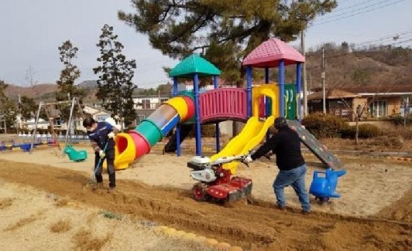 밀양교육지원청 학교통합지원센터, 어린이 놀이기구 모래장 소독!