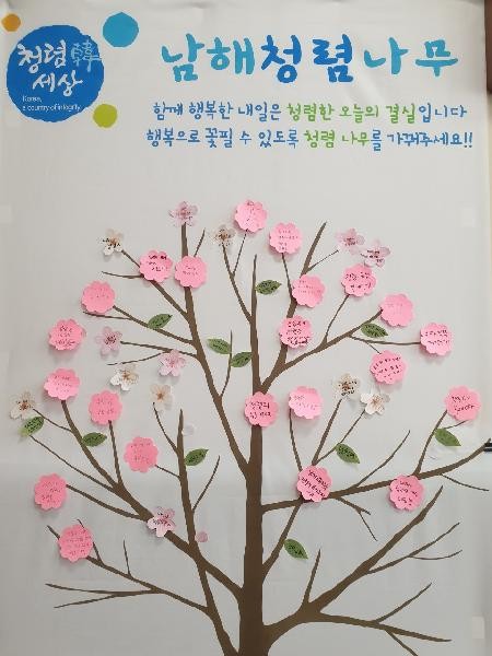 또한 만들어진 청렴다짐나무는 1층 로비에 전시되어 민원인들에게도 남해교육지원청 직원들의 청렴 실천 다짐을 널리 알릴 수 있는 기회가 되었다.