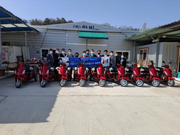 이날 전달된 전동스쿠터와 버섯재배키트는 독거노인을 비롯한 어려움에 처한 저소득층 및 복지 사각지대에 놓인 이웃들에게 기부될 예정이다.
