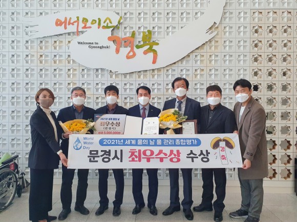 이번 수상은 경북도에서 23개 시군을 대상으로 2020년 한 해 동안 물관리 정책 전반에 대한 추진실적을 종합적으로 평가한 결과로 더욱더 값진 성과이며, 문경시는 지속적인 상수도 보급과 노후관 정비, 상수도사업소 자체 누수전담팀 운영으로 예산절감과 유수율 증대 등을 크게 인정받아 최우수상을 수상하는 쾌거를 이뤄냈다.