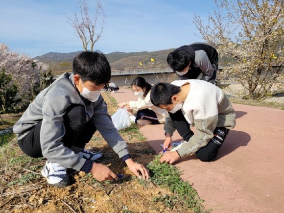 조별활동을 통해 봄나물을 채취하며 우리 학교 주변에서 쉽게 볼 수 있는 봄나물 찾기, 봄나물 사진 찍고 그림 그리기를 한 후 봄나물 알아보기 신문을 만들어 봄나물의 종류와 효능을 알리고, 기후 변화의 위기를 인식하고 탄소 발자국을 줄이는 방법으로 지속가능한 삶에 대해 알리는 시간을 가졌다.