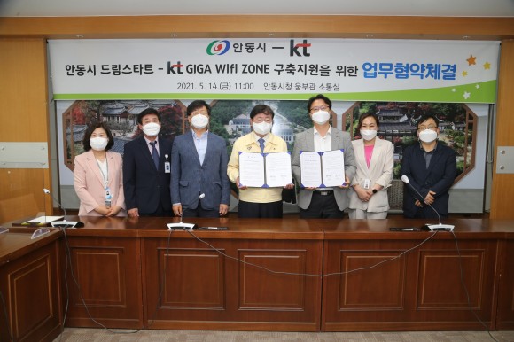 |  | | | ⓒ (주)영남도민일보 | | [영남도민일보] 김 진규 기자 = 안동시는 5월 14일 드림스타트 대상아동들이 가정에서 원활하게 온라인 학습활동에 참여할 수 있도록 KT안동지사와 기가 와이파이존(GiGA Wifi-Zone) 구축 지원을 위한 업무 협약을 체결했다.