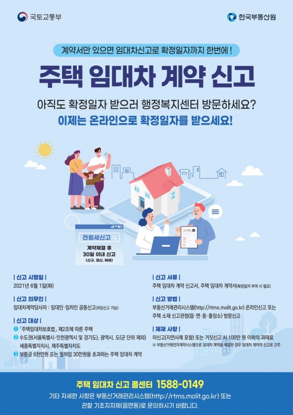 또한, 임대차 계약 신고와 동시에 확정일자가 자동 부여되기 때문에 읍면동사무소나 등기소 방문 없이 임대차 계약 신고로 세입자 권리를 보장받을 수 있게 됐다.