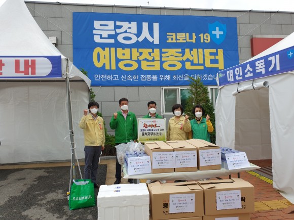 |  | | | ⓒ (주)영남도민일보 | | [영남도민일보] 김재근 기자 = 문경시새마을회(회장 박원규)에서는 5월 21일 온누리스포츠센터에 마련된 코로나19 예방접종센터를 방문하여 코로나19 백신 접종을 위해 헌신 중인 80여명 종사자들의 노고에 감사하는 마음을 담아 도시락과 생수 300병을 전달했다.