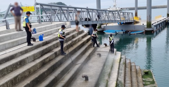태안해경 신진파출소는 이 같은 안전사고를 미연에 방지하고자 신진항 낚시어선 협회와 적극적 협업 소통을 통해 고압살수기 등을 동원, 우려스런 주변환경을 말끔히 소제하였다.